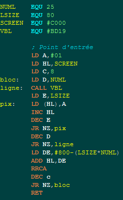 C'est alors que j'ai découvert l'Assembleur. Il était possible d'étendre le BASIC avec de nouvelles fonctions comme des Sprites en manipulant directement la mémoire de l'écran. Le processeur Zilog Z80 était vraiment puissant pour l'époque.